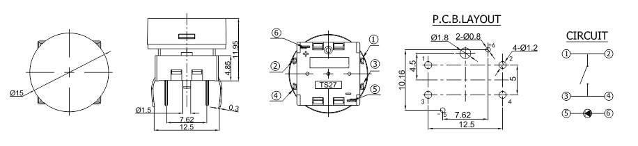 • 帶燈輕觸開關(guān)TS27-1-TW-R-S