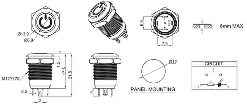 安裝尺寸:Φ12mm